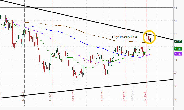 The 10yr #UST yield fell back from the trendline from the Nov ‘24 highs for a third session but continued to hold the 200-DMA ending at 4.24%. As I said Thurs “We’ll see if it breaks through that and returns to its old range or bounces to again test that major downtrend line.”
