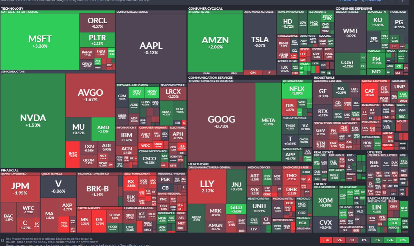 Less green and more red on the stock-by-stock flag from @finviz_com particularly in Financials, Industrials, and Tech.
