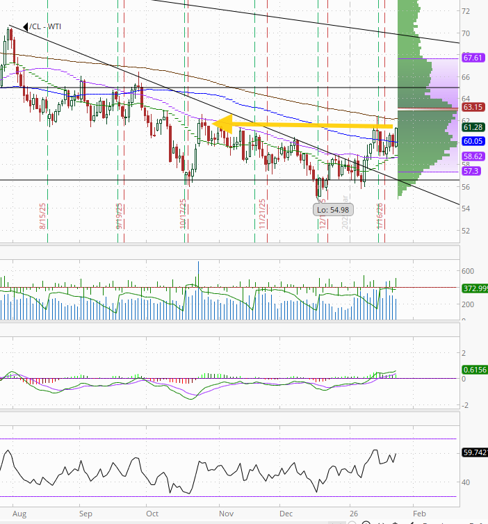 WTI futures u +2.7% Fri to the highest close since Oct 27th edging just out of the range of the past week. Daily MACD remains in “go long” positioning while the RSI is now close to 60. Still lots of resistance overhead though.