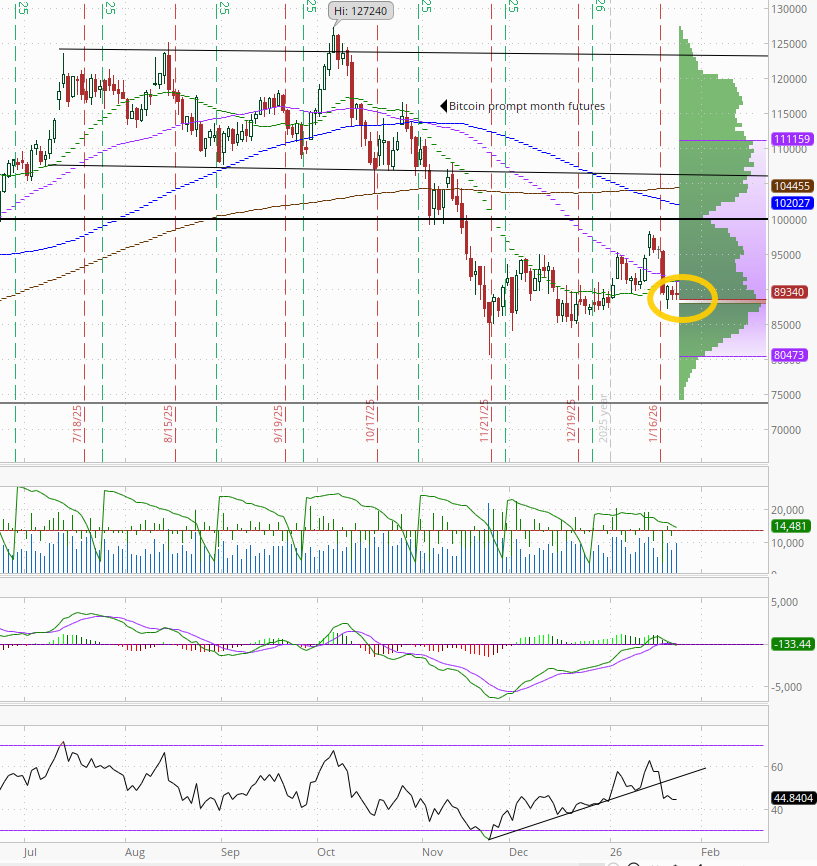 Bitcoin futures continue to sit out the party, little changed just under the $90k level and 50-DMA. I noted Wed “has a good deal of resistance above.”