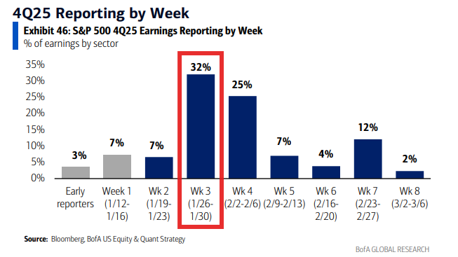 “Investors remain conditioned to buy every dip — retail money rushed in during this week’s selloff, reinforcing a pattern that’s been in place since 2020,” said Mark Hackett at Nationwide. “That combination of broadening leadership and deeply ingrained buy-the-dip behavior continues to tilt the odds in favor of the bulls.” Stress-driven selloffs are becoming increasingly short-lived, and the latest one was not echoed in other technical indicators such as credit spreads, the put/call ratio, or financial conditions, Hackett noted. “Following the strong run to record highs, it is not unusual or unhealthy to see a period of consolidation,” he said. Hackett also added that the pattern in seven of the past eight quarters is that equity markets rally into earnings season but are met with volatility and market sluggishness, despite better-than-expected results, as skepticism arises, investors are more reactive and companies are unable to buy back shares due to earnings blackout periods.