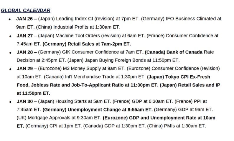 But the Fed kicks back into the spotlight with the Jan FOMC decision, although this will be the least exciting (if you’re interested in the path of interest rates) since last summer with a hold a lock, no updated SEP or dot plot, and Jerome Powell likely to get as many questions about Trump, his future, Fed independence, etc., as he is about the economy and monetary policy. That said, it will at least be interesting and hopefully he’ll give some clues on what the core of the Fed is looking for in order to cut again, and perhaps even push back against market expectations that we’ve seen the last cut under his term.