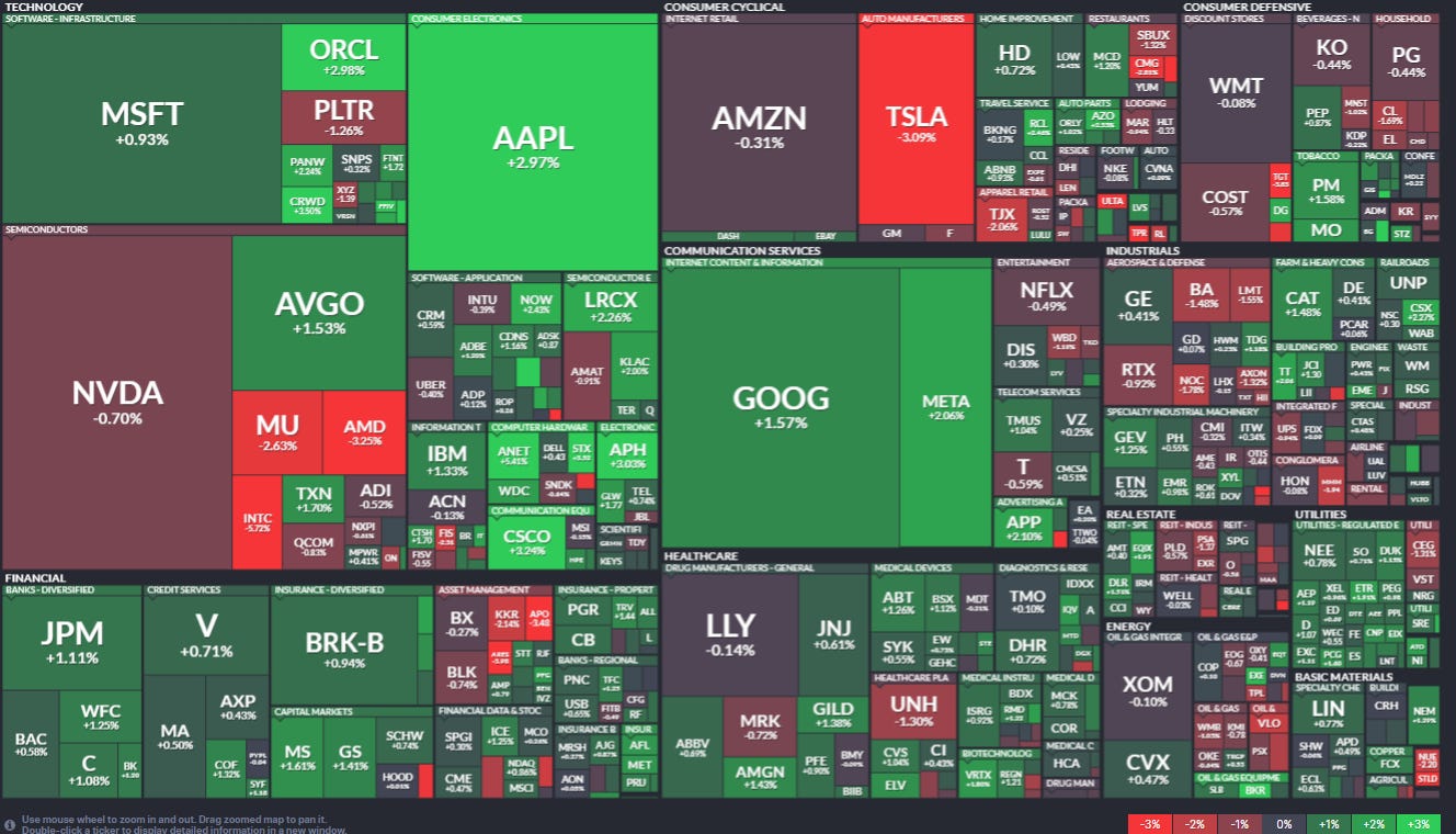 4 of those 12 up 3% or more were >$100bn in market cap in ANET, CRWD, CSCO, APH (in descending order of percentage gains). ORCL & AAPL just missed (+2.98 & 2.97% respectively).