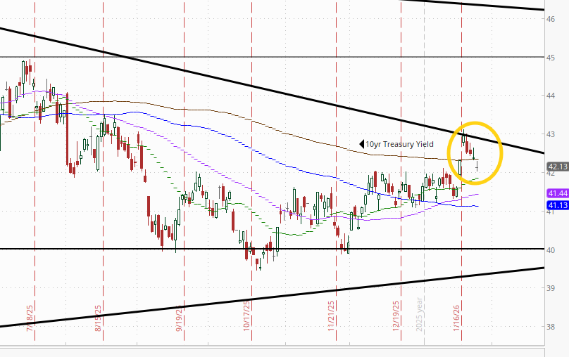 The 2yr yield, more sensitive to FOMC rate cut pricing, also was down for a second session from the highs of the year to 3.59% still over the top of the channel it had been in since the start of 2024 until breaking out two weeks ago. I hope it falls back in, because it was a really good channel.