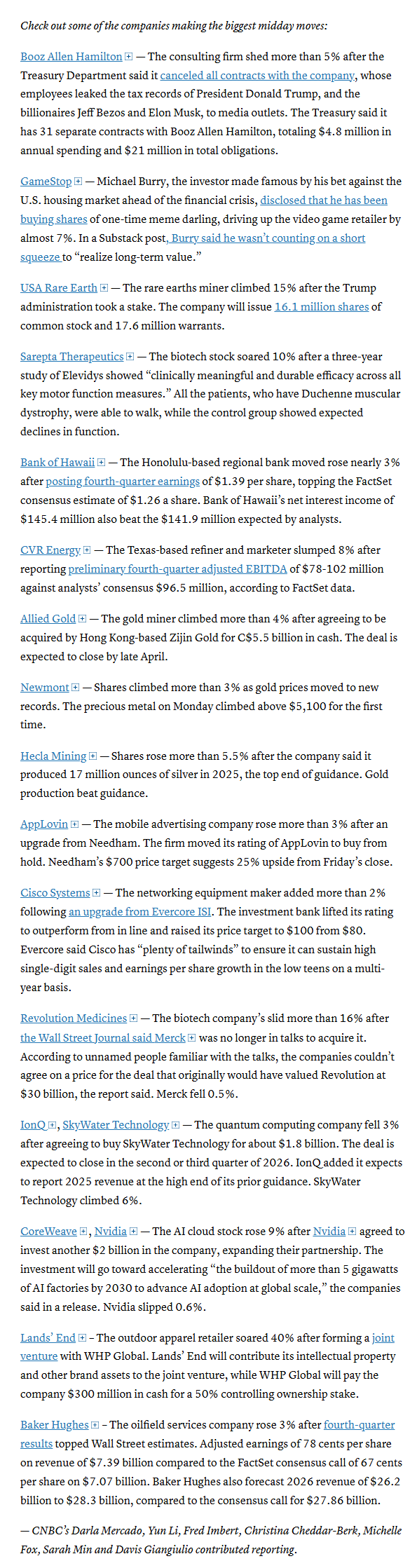 Mid-day movers from CNBC: