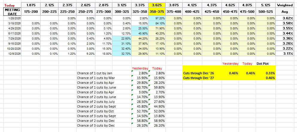 The dot plot as a reminder has 33bps for the average dot for 2026.