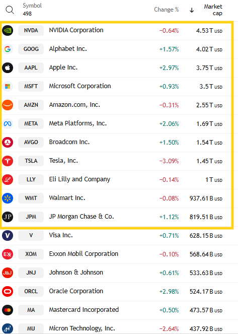 3 of the 12 down -3% or more were >$100bn in market cap in INTC, AMD, TSLA (in order of percentage losses).