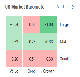 Morningstar style box one of the more mixed recently but a clear winner was large cap growth.