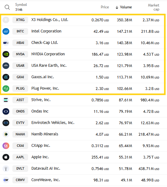 Intel as a side note remained in the top 2 for a second day.