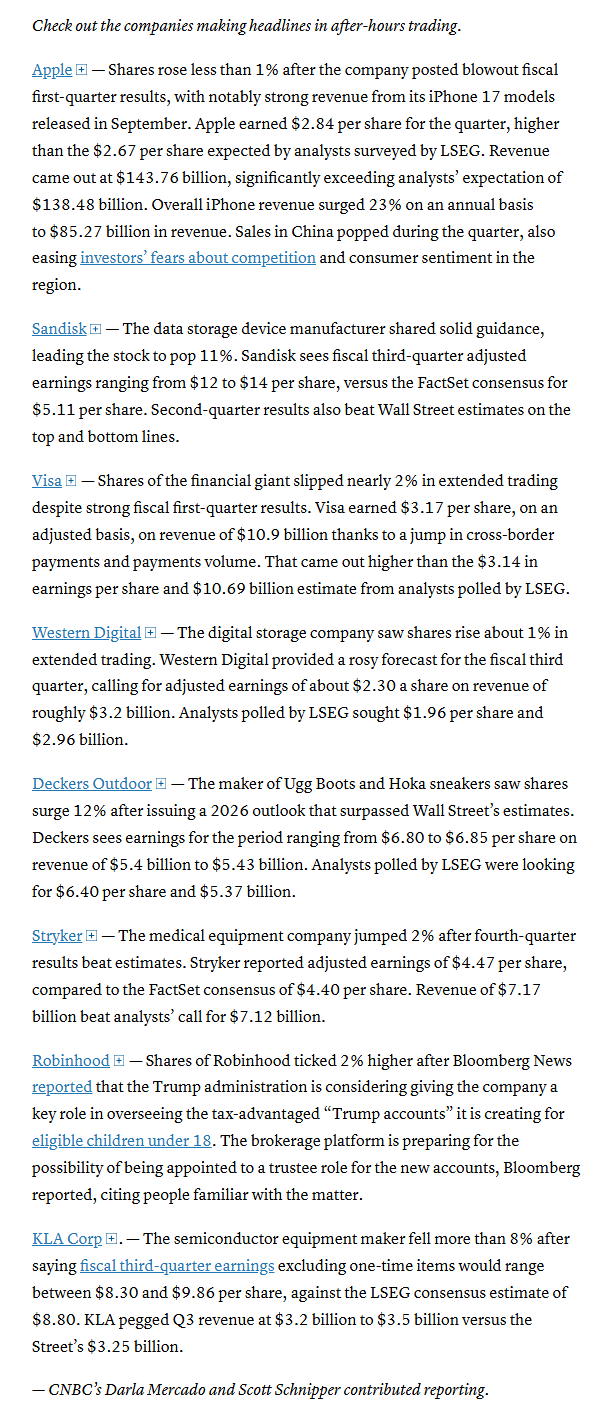 Apple Inc. posted strong results after the close. Amazon.com Inc. was said to be in talks to invest as much as $50 billion in OpenAI.