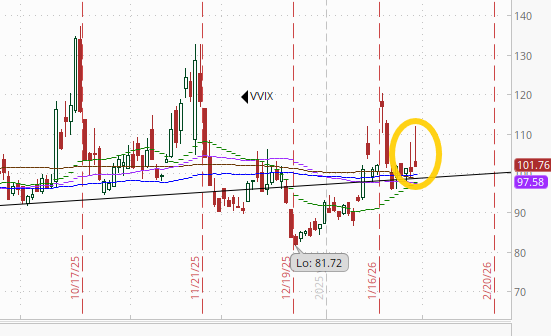 The VVIX (VIX of the VIX) also little changed at 101.8. The current level is consistent with “moderately elevated” daily moves in the VIX over the next 30 days (historically normal is 80-100, but we’ve been above 90 almost the entire time since July ‘24)). 100 is the level flagged by Charlie McElligott as one to watch.