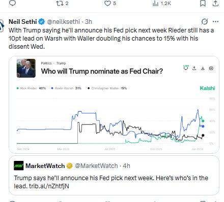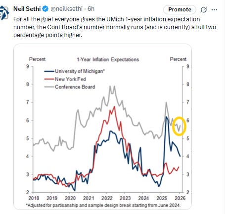 Fed monetary policy speaking blackout is over, and you can expect to hear from several Fed speakers tomorrow. Traditionally the dissenters provide a defense for their dissent so you can expect to hear from Gov’s Miran and Waller. In addition Gov Bowman is scheduled to make remarks as is St Louis Fed Pres Musalem (non-voter this year). I would be surprised if there weren’t more.