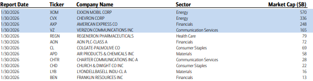 SPX earnings will ease off from here but we’ll still get another 12 SPX components, with 4 >$100bn in market cap in XOM, CVX, AXP, VZ (in descending order by market cap).
