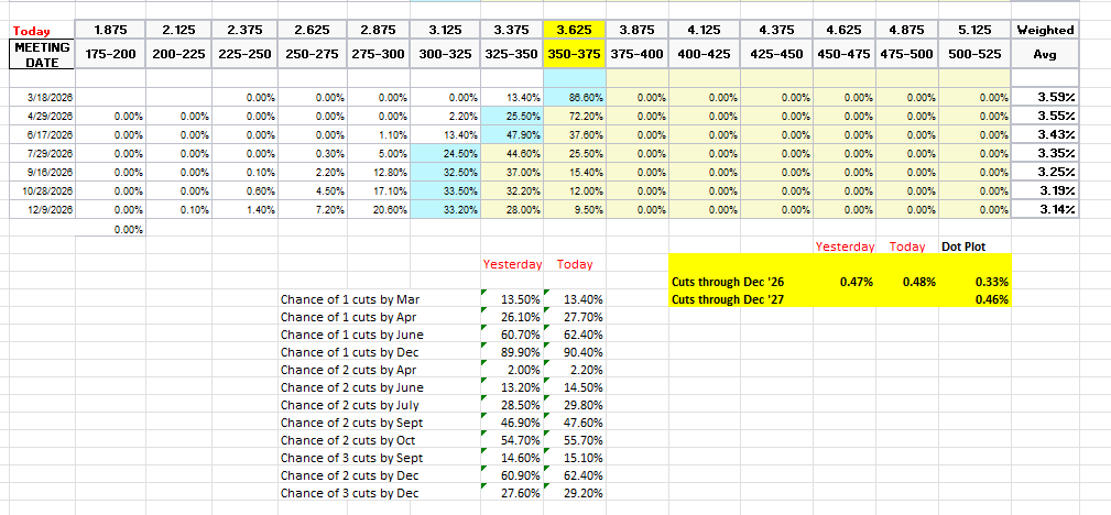The dot plot as a reminder has 33bps for the average dot for 2026.
