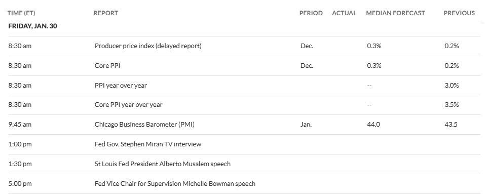 As noted in the Week Ahead, it’s a relatively light week (in terms of importance) for US economic data, and Friday brings us another delayed report (but just a couple of weeks in this case) in Dec PPI which will help us nail down what we can expect to see for Dec core PCE prices, the Fed’s preferred inflation index.