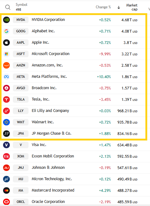 11 of those 22 were >$100bn in market cap in META, IBM, APP, HON, T, MA, LMT, LRXC, KLAC, PH, CAT (in descending order of percentage gains).