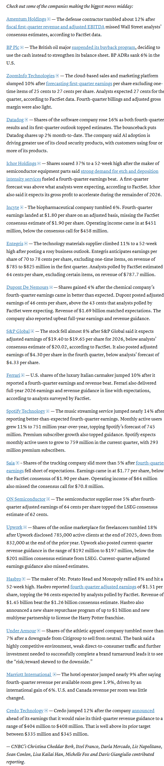 S&P Global Inc., a company that rates bonds and sells market data, slumped after reporting a 2026 profit forecast that fell short of analyst expectations.