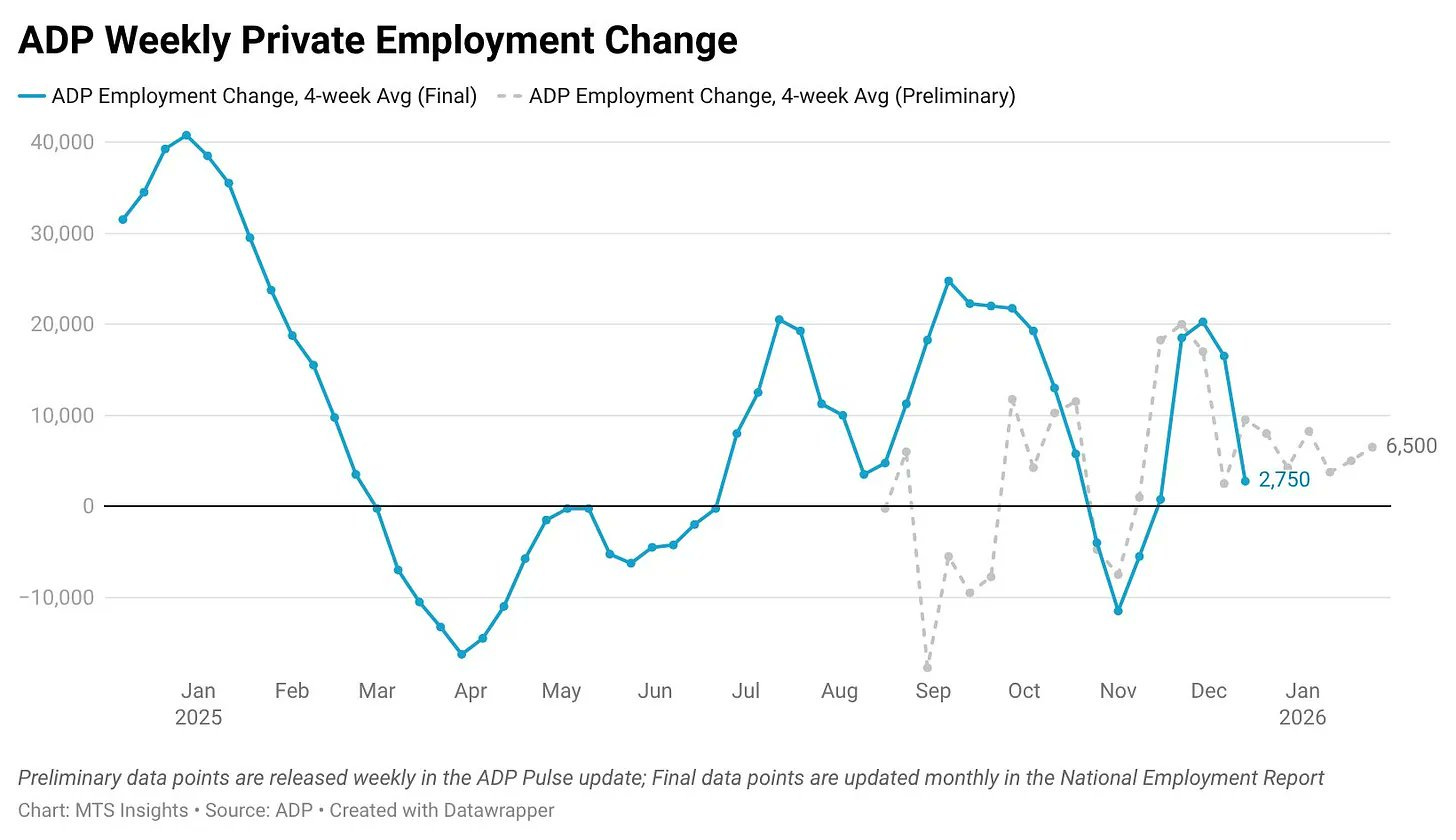 This report “isn’t a disaster,” but it isn’t a constructive signal either, especially with lingering labor-market concerns and continued volatility across several asset classes, according to Bret Kenwell at eToro. “Tomorrow’s jobs report will be key,” Kenwell said. “A weak print could push sentiment further toward risk-off if growth worries start to build, but a solid print may ease some of those concerns.”