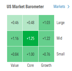 The market-cap weighted S&P 500 (SPX) was +0.1%, the equal weighted S&P 500 index (SPXEW) +1.0%, Nasdaq Composite -0.2% (and the top 100 Nasdaq stocks (NDX) +0.2%), the SOXX semiconductor index +0.7%, and the Russell 2000 (RUT) +1.2%.