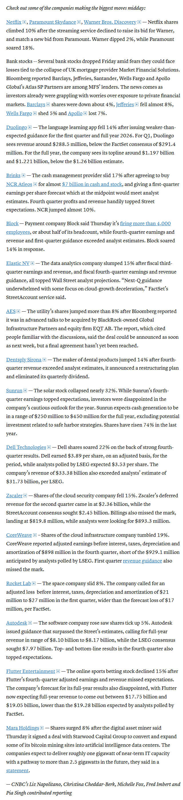 Mid-day movers from CNBC: