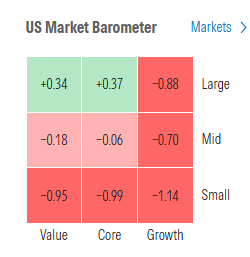 Morningstar style box mostly red Fri with just larger value names escaping.