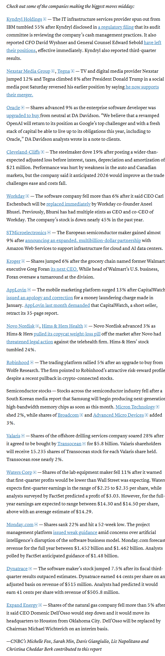 Mid-day movers from CNBC: