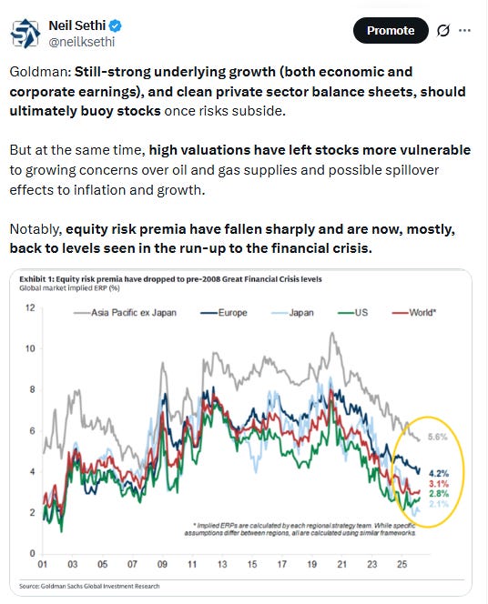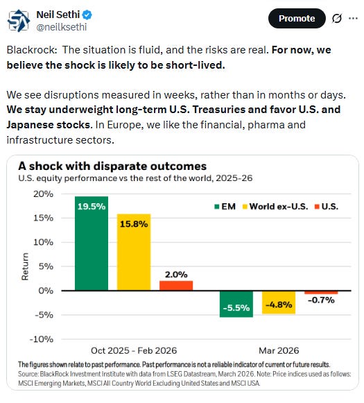 The continued elevated oil prices saw bond yields continue their rise as Fed rate cuts fell to the lows of the year (with now just one cut priced through the end of next year) further pressuring equities (all covered in the subscriber section). And sentiment was also dented after the Financial Times reported that JPMorgan Chase & Co. marked down the value of loans and tightened lending and Bloomberg reported continued large withdrawal requests from other credit funds as concerns mounted over private credit.