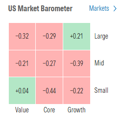 With the pressures noted above, indices spent most of the day (particularly the afternoon) in the red, although just the DJIA ended down more than -0.2% at -0.6%