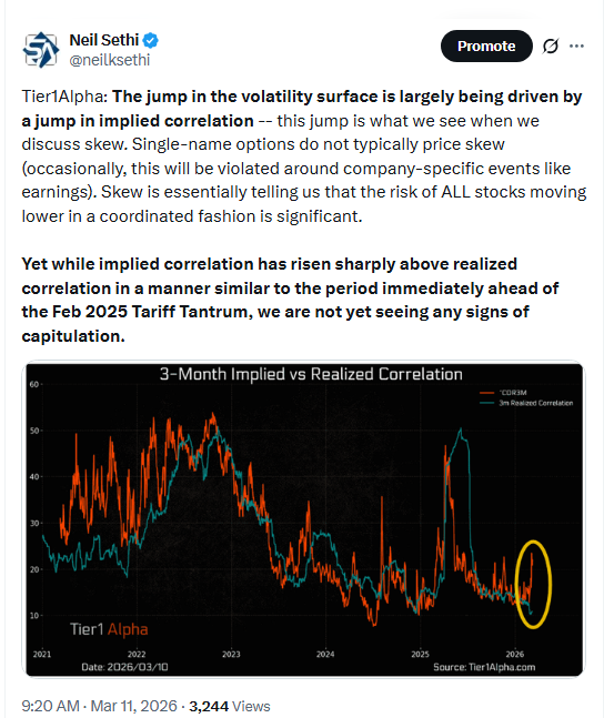 “Trump suggesting the war may be ending soon, post an extraordinary surge in oil volatility, may imply his ‘pain threshold’ has been reached, in our view. This has reinforced market expectations of a quick de-escalation,” wrote Emmanuel Cau, head of European equity strategy at Barclays, in a Wednesday note.