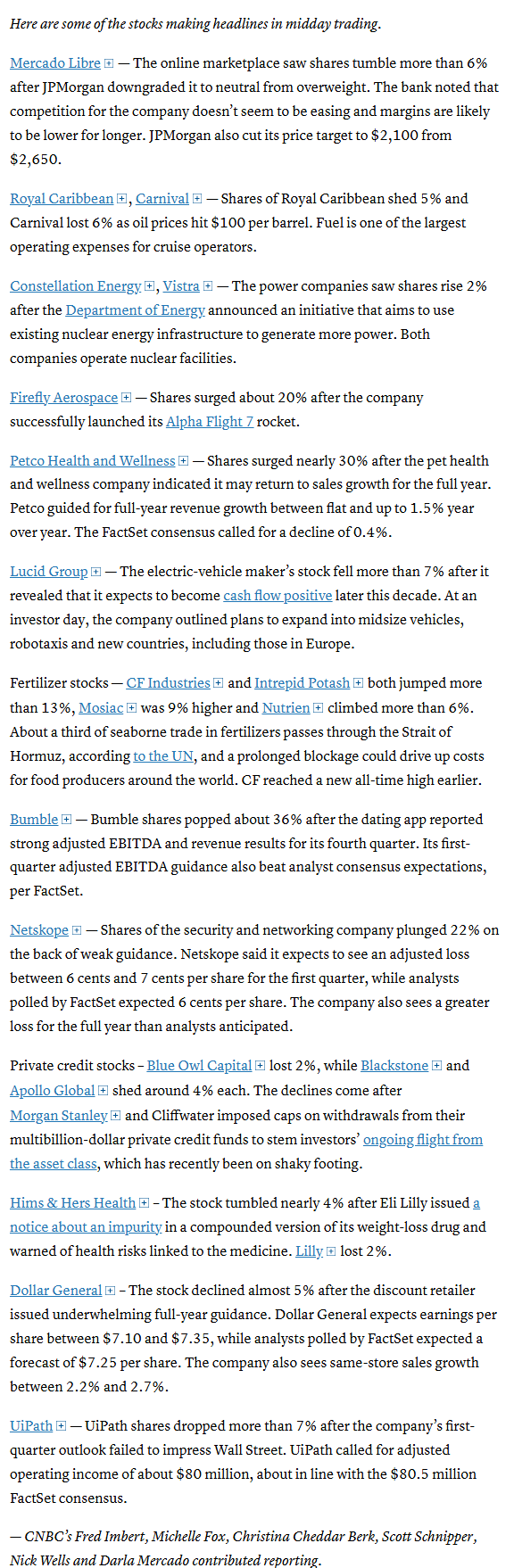 Mid-day movers from CNBC: