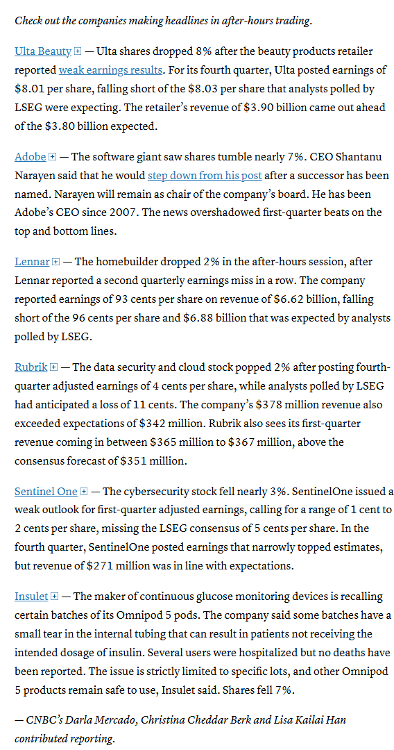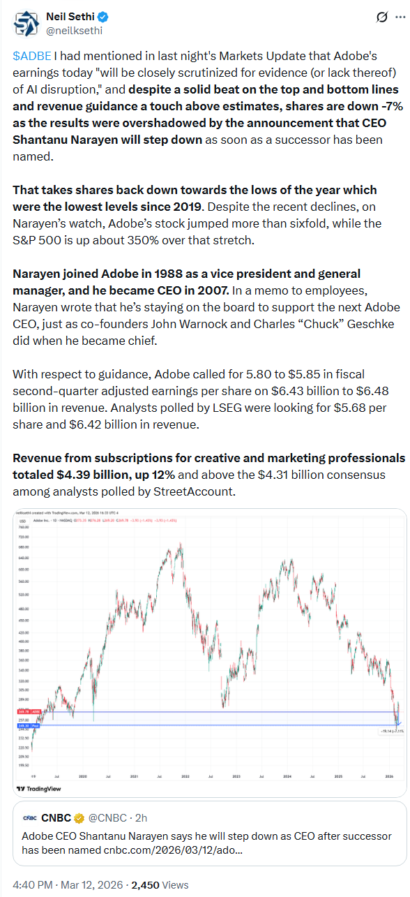 In late hours, Adobe Inc. gave a tepid outlook and said its chief will resign.