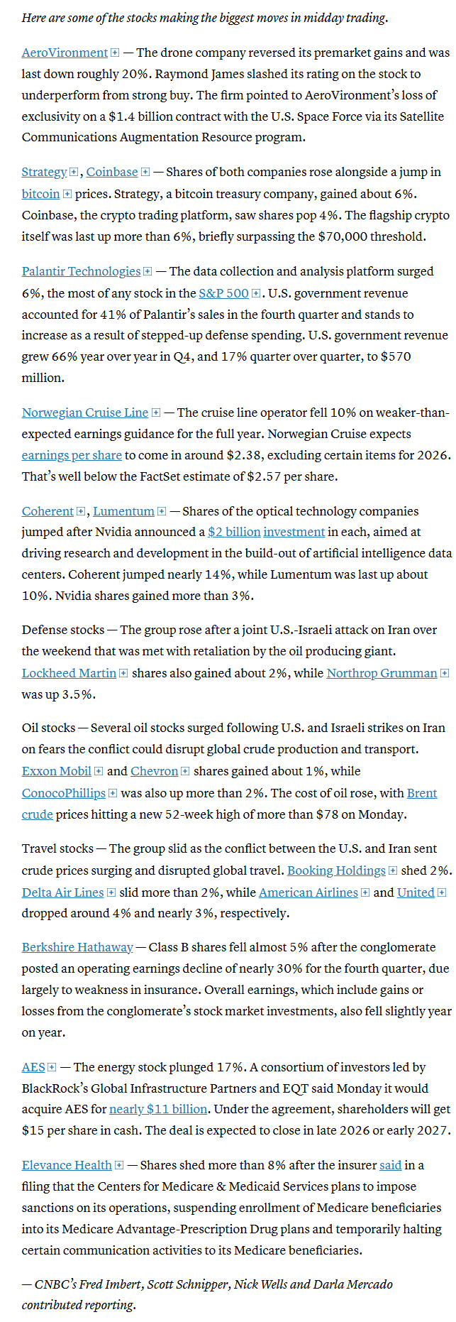 Mid-day movers from CNBC: