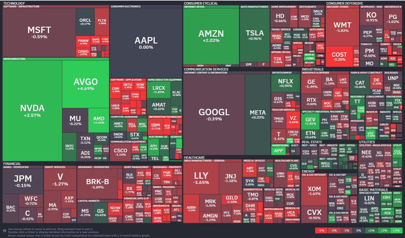Semiconductor stocks put together another strong showing with solid gains across large chipmakers such as Advanced Micro Devices (AMD 245.04, +8.40, +3.55%) and NVIDIA (NVDA 188.74, +4.84, +2.63%). Super Micro Computer (SMCI 25.26, +2.04, +8.79%) and Coherent (COHR 307.50, +23.33, +8.21%) captured even wider gains, and the PHLX Semiconductor Index finished 2.3% higher.