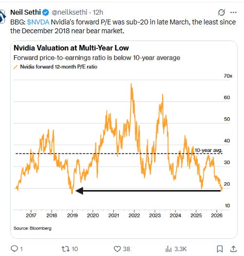 BBG notes that NVDA’s forward P/E has rarely been this low: