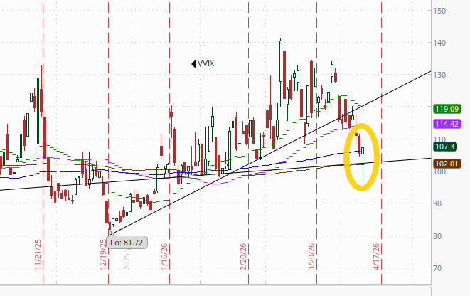The VVIX (VIX of the VIX) at one point fell to the least since mid-Jan but ended a little higher at 107.2, just off the least since February.