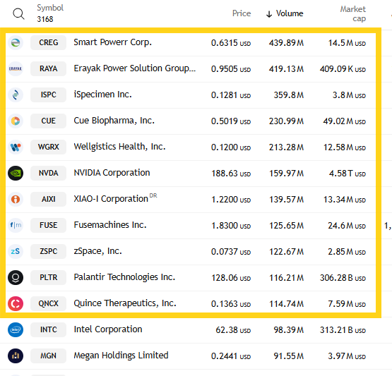 As a side note, speculation remains active on the Nasdaq although not quite at the fever pitch we saw earlier this month. Still there were five stocks on the Nasdaq trading over 200mn shares and another six over 100mn (and another at 98mn).