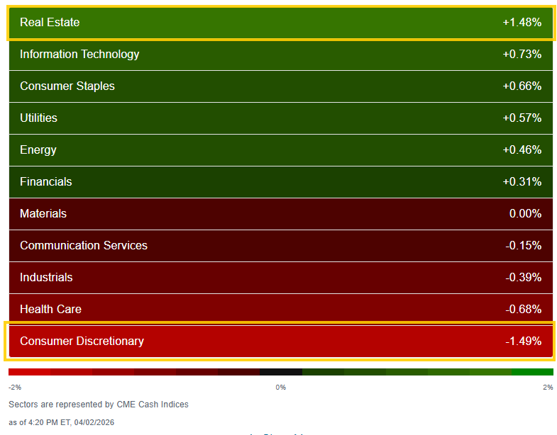 Tech finished second but Wed/Tues leader Comm Services would fall into the red and the other megacap growth sector (Cons Discr) would lead to the downside -1.5% the only sector down more than -0.7%.