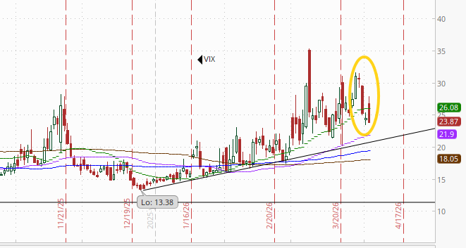 VIX fell for a fourth session to the lowest close in two weeks but still a little elevated at 23.9. The current level is consistent w/~1.50% average daily moves in the SPX over the next 30 days.