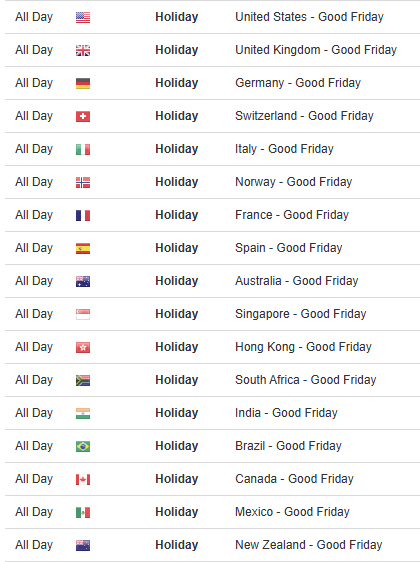 “With a long weekend looming thanks to tomorrow’s Good Friday, it looks like Thursday is the new Friday, particularly when one considers the potential event risks. There is also the small issue of a non-farm payroll report released tomorrow in what’s sure to be poor liquidity conditions.” — Cameron Crise, Macro Strategist, Markets Live