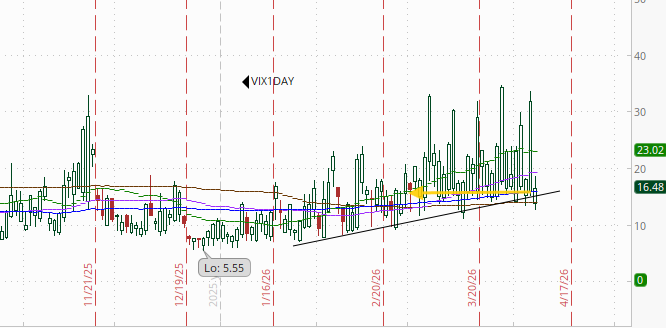 With a ceasefire at least theoretically in the works, like the VIX the 1-day VIX fell to the least since February at 16.5. That’s consistent with a move of 1.03% in the SPX next session, half the move implied at Tuesday’s close.