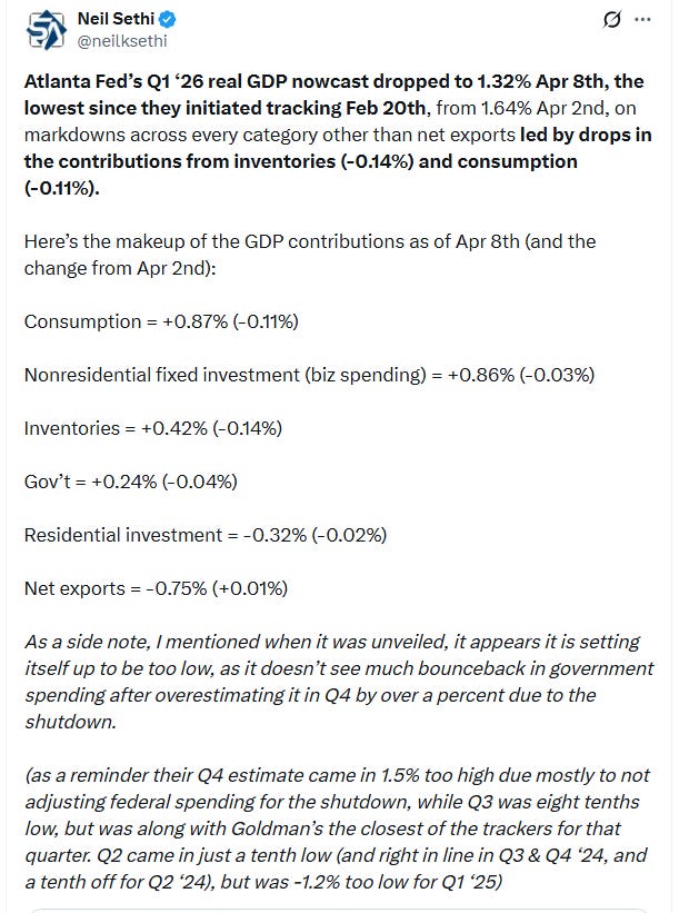 While Atlanta Fed cuts their 1Q GDP forecast further (which I think though is setting up to be too low as noted in the post):