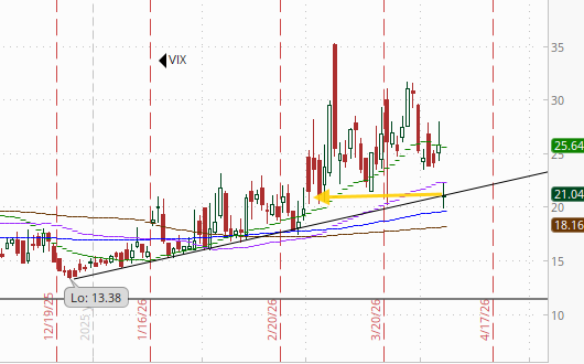 VIX dropped to the lowest close since the start of the war at 21.0, a favorable development, although the current level is still consistent w/~1.31% average daily moves in the SPX over the next 30 days. It’s now on its uptrend line from the December lows as well.