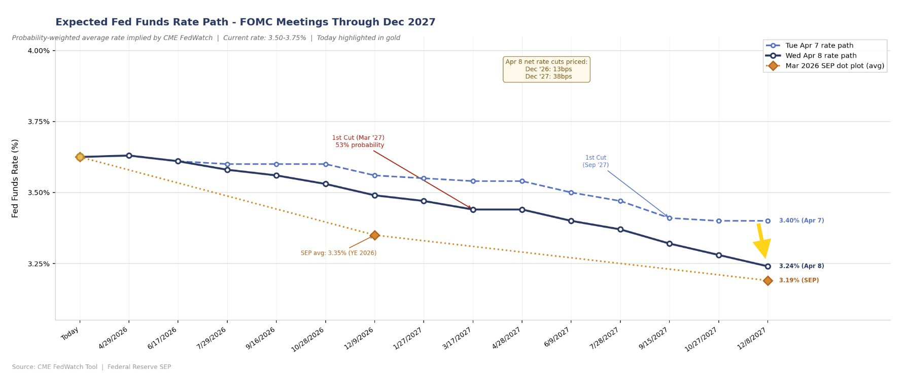 Change from Tuesday. Note includes the dot plot average in orange.