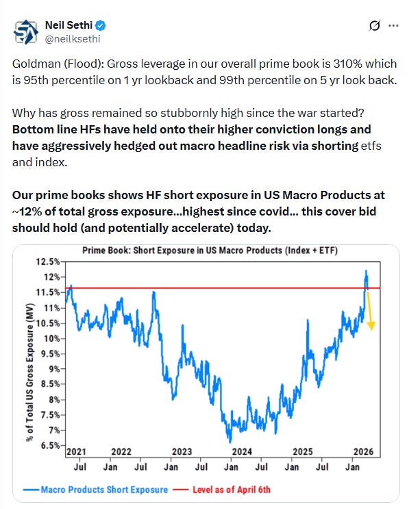 “The ceasefire is a clear positive, but it’s not a resolution,” said Mark Hackett at Nationwide. “What stands out is how quickly the market flipped once the pressure eased. When positioning gets this crowded, it doesn’t take much to spark a reversal.” Equity strategists at Barclays Plc said they expected stocks to experience a “powerful short squeeze,” as hedge funds remove protections that were put in place to hedge the risk of further escalation. Hedge funds are rushing to close out bets against US stocks at a pace not seen since the market rebounded from the crash set off by the pandemic in March 2020, according to Goldman Sachs’ trading desk division.