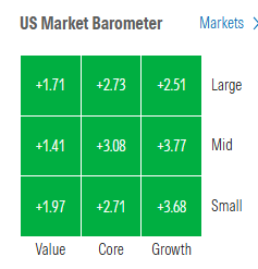 Morningstar style box showed strong gains across the style box led by growth.