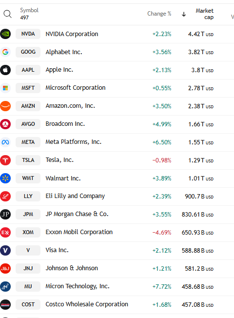 Out of the top 16 names, just Tesla and Exxon were lower.