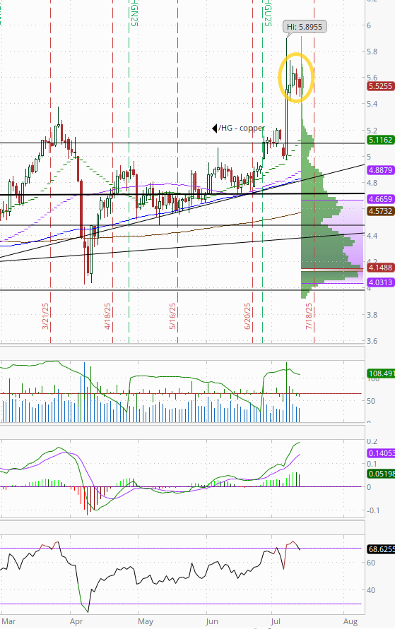 Copper (/HG) futures had their second straight down session since spiking higher last week on the Trump tariff threat, now down -2%, but remaining well into record territory pre-last week.