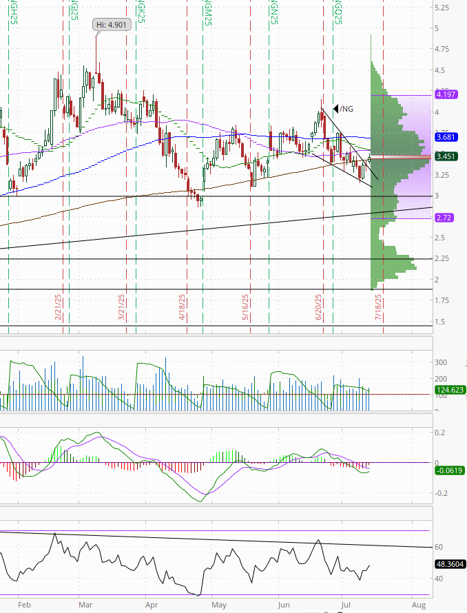 Overall they remain in their range this year. Daily MACD and RSI tilt negative but are improving.