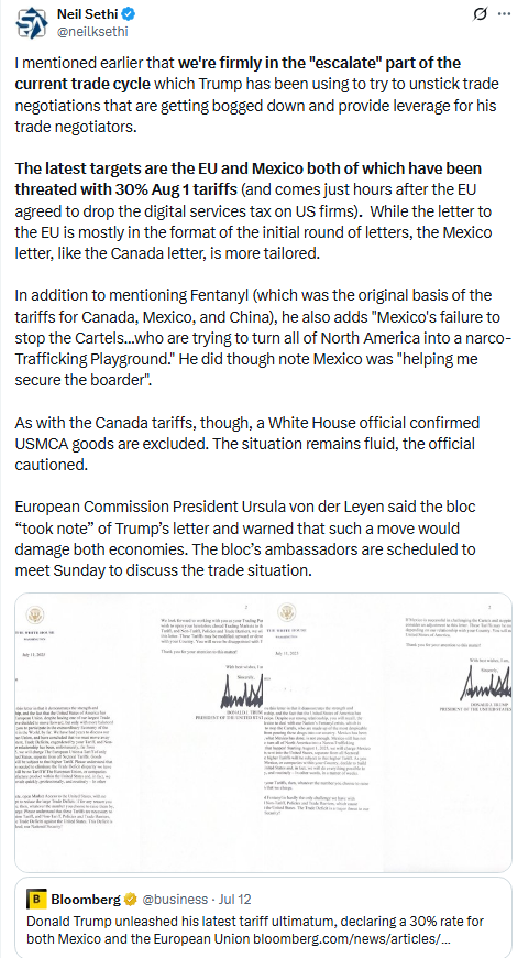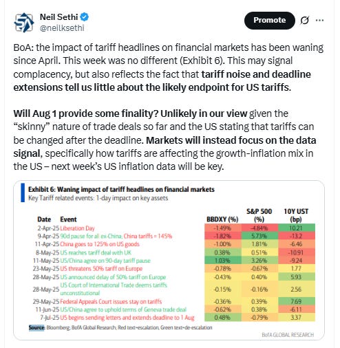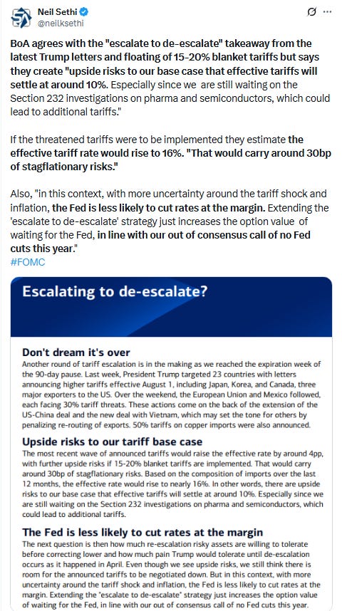 In that scenario, Trump's new Aug. 1 deadline for trade deals could "see a flood of new higher tariffs, as well as retaliation."
