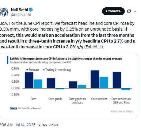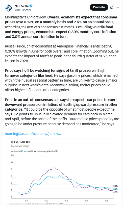 US economic data gives us our highlight of the week with the CPI report. Some posts on expectations are below.
